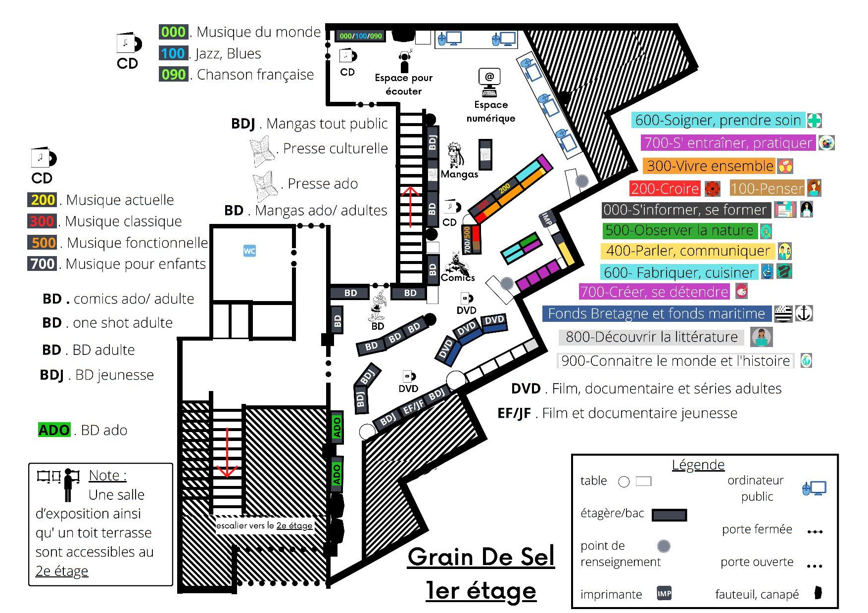 Des livres bien sûr (romans, BD, livres documentaires…) mais aussi un espace presse, des CD (avec une borne d’écoute), des DVD… Et plein de recoins pour se poser, se détendre ou travailler ! Le fonds initial de l’ancienne bibliothèque a été largement enrichi et continuera d’évoluer.